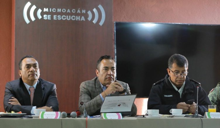 Morelia, Michoacán, a 14 de enero de 2020.- Integrantes de la Mesa de Coordinación para la Construcción de la Paz, acordaron dar seguimiento a las acciones de seguridad emprendidas en Churumuco y Aguillilla, con una estrategia integral que incluya el reforzamiento de programas sociales.