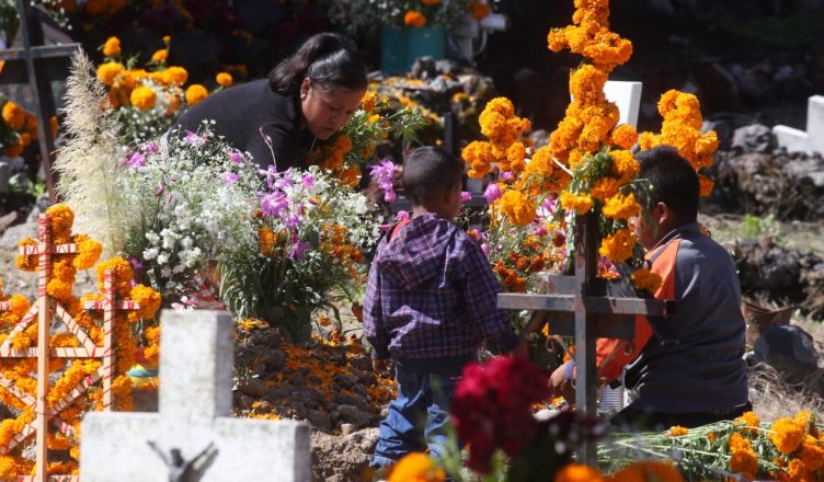 El olor y color de la flor de cempasúchil está presente en cada uno de los rincones del panteón, donde las familias completas adornan la tumba de sus seres queridos, a quienes esperan con los alimentos, la bebida y la música que fue de su preferencia.