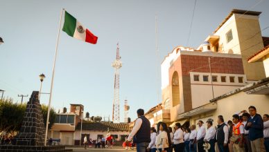 Tingambato, Mich. – Autoridades municipales, educativas, estudiantes y padres de familia, llevaron acabo el acto protocolario del día de la bandera, con alumnos