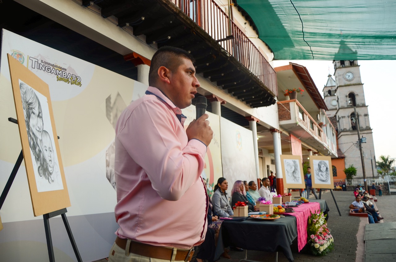El artista José Alfredo Jiménez Martínez, realizo un montaje de 4 obras con técnica a lápiz, con la temática “Mujer Tingambato”, durante el evento en la plaza principal. Por la mañana del pasado domingo en coordinación la Instancia de la Mujer municipal se llevaron acabo dos conferencias magistrales, impartidas, la primera por Diana Zuleyma Ornelas García con el tema, “avances y retos una evolución de los derechos de las mujeres” y la segunda por Gabriela Navidad Villanueva Jiménez con el tema “ámate mujer aprendiendo a ser libre”.