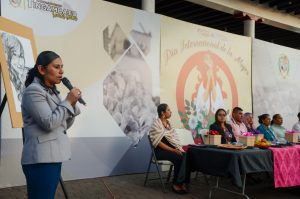 Norma Rocio Villegas, titular de la Instancia de la Mujer Tingambato, informo que tienen como objetivo de realizar talleres, conferencias, eventos públicos para promover la igualdad entre mujeres y hombres en las áreas de desarrollo social. Exhorto a realizar un cambio para el buen trato de las personas y sobre todo de las mujeres.