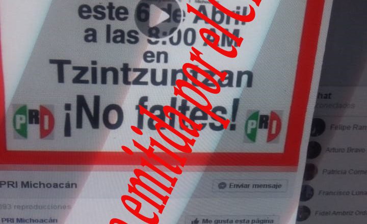 Morelia, Michoacán 04 de Abril de 2019. El Comité Directivo Estatal del PRI denuncia la clonación de la página de facebook oficial del instituto político en la entidad.