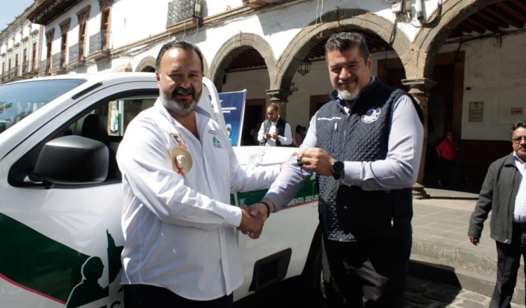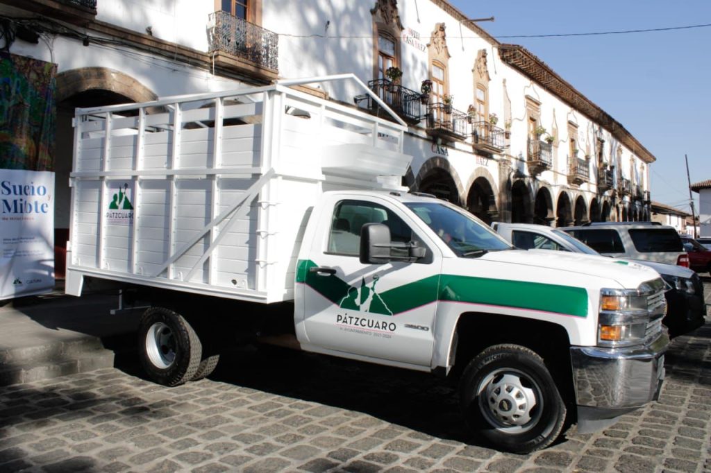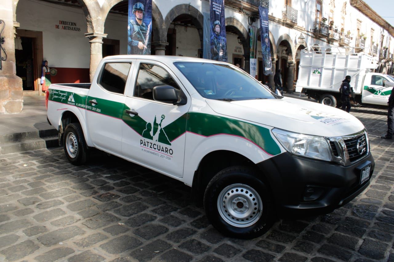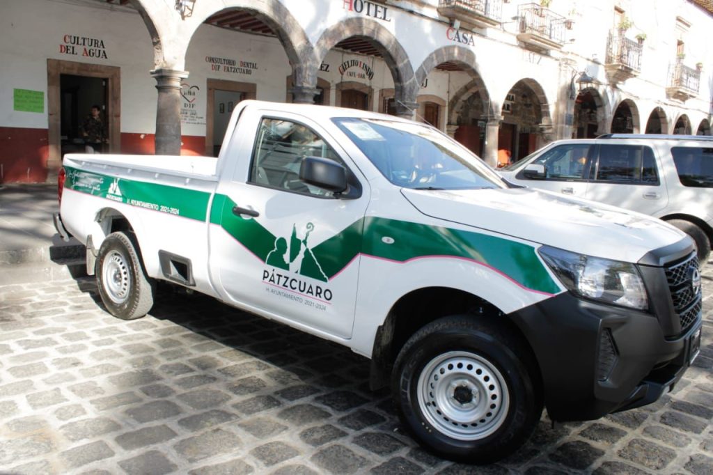Pátzcuaro, Mich. A 20 de Febrero del 2023.-La Secretaria del Bienestar, Obras Públicas y Servicios Públicos Municipales recibieron tres camionetas, una frontier pick-up, una camioneta doble rodado y una frontier doble cabina, una de ellas, será destinado al área de limpia pública, parques y jardines.