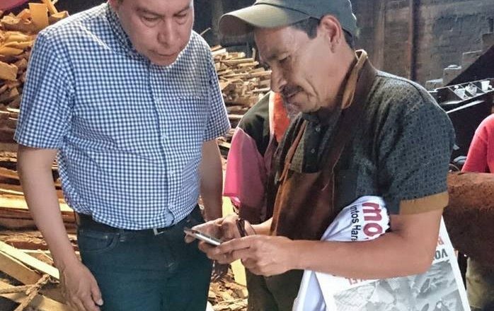 Pátzcuaro, Mich. 25 de mayo de 2018.- Durante el recorrido que realiza por cada rincón del Distrito XV local con cabecera en Pátzcuaro, el ingeniero Francisco Márquez Tinoco, candidato a Diputado Local por los partidos PT y Morena, visitó varios talleres de cobre en Santa Clara del Cobre, donde tuvo la oportunidad de escuchar a trabajadores.