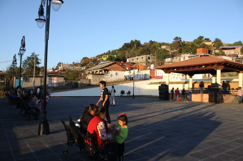 La plaza fue reconstruida con piso volcánico, instalación de alumbrado, se rehabilitó la pérgola con cantera y madera, muros de contención, además de los jardines.