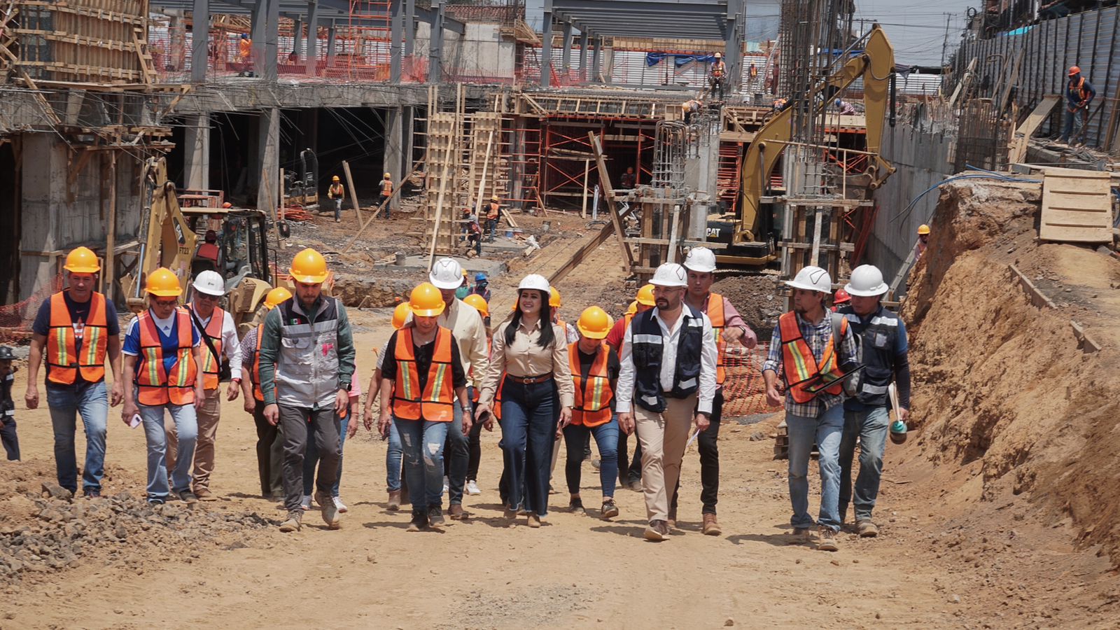 Durante el recorrido la secretaria destacó que la construcción mantiene un gran avance porque se encuentra la cimentación de todos los elementos estructurales en su totalidad, hay un colado firme en la zona de estacionamiento y un nivel muy avanzado en la albañilería, por lo que ya se pueden observar las dimensiones que este espacio tendrá.