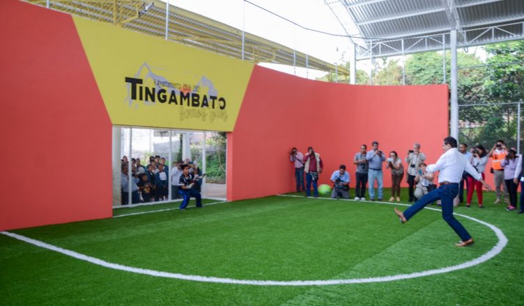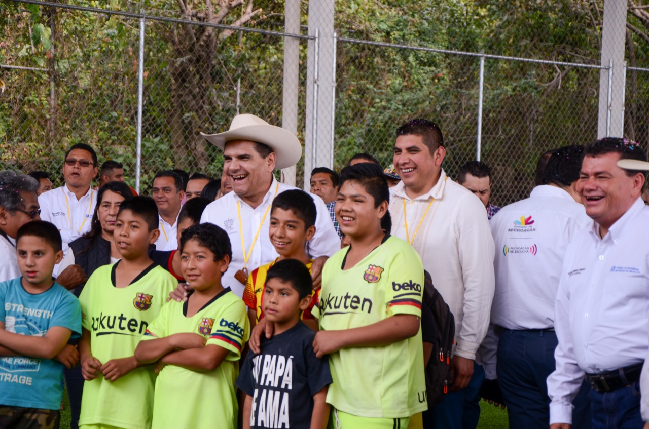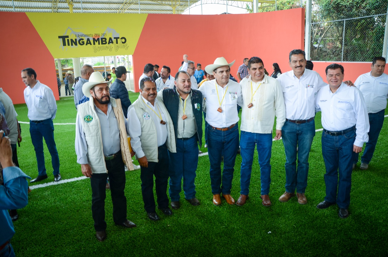 Tingambato, Mich. – Con el objetivo de fortalecer la infraestructura deportiva en el municipio, en su gira de trabajo del Gobernador Silvano Aureoles Conejo y el alcalde, Nelson Villegas Figueroa, en compañía de deportistas del lugar y autoridades, inauguraron la primera cancha de futbol con techado.