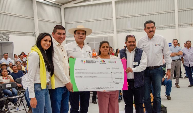 Durante el evento; entregaron apoyos del Fondo Ambiental para la Protección y Conservación del manantial Ojo de Agua, para plantar árboles nativos y garantizar protección del manto acuífero, en beneficio de más de 4 mil habitantes, ya que se considera un área de recarga hídrica indispensable para la población.