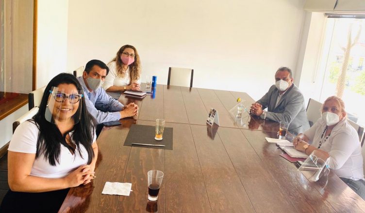 Morelia, Michoacán, 01 de septiembre del 2020.- La presidenta de la Mesa Directiva y el presidente de la Junta de Coordinación Política (JUCOPO) del Congreso del Estado, Brenda Fabiola Fraga Gutiérrez y Javier Estrada Cárdenas, respectivamente, se reunieron con Edelmira Mendoza y Martín Munguia, dirigentes sindicales del Legislativo para juntos, generar estrategias para salvaguardar la integridad y la salud de quienes laboran en el Poder Legislativo y coadyuvar a romper la cadena de contagios de Covid-19.