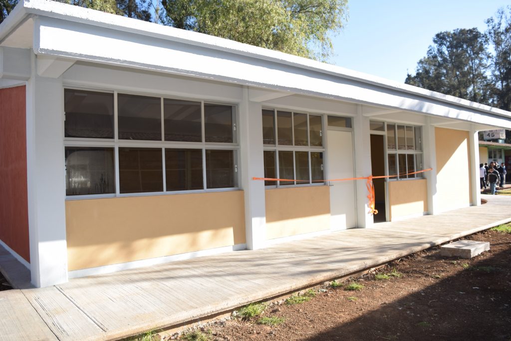 Acompañada del alcalde José Humberto García Domínguez, la funcionaria estatal cortó el listón inaugural de los trabajos de construcción de dos aulas didácticas en la Secundaria Técnica no. 45 “Francisco J. Múgica”, con una inversión de un millón 55 mil 713 pesos del Fondo de Aportaciones Múltiples (FAM).