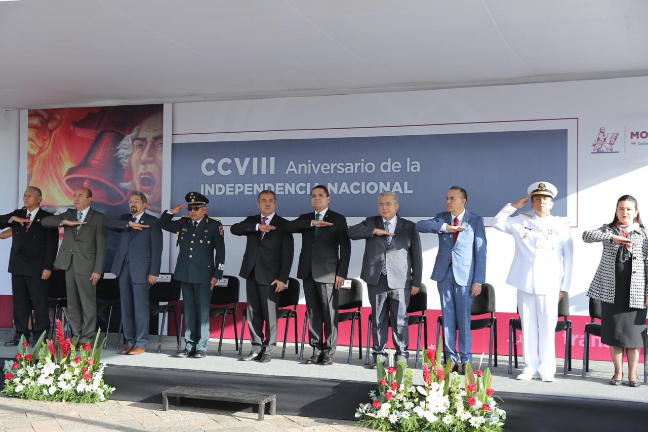 Morelia, Michoacán, a 16 de septiembre de 2018.- La Junta Patriótica “Independencia de México y José María Morelos y Pavón 2018”, presidida por el Gobernador Constitucional, Silvano Aureoles Conejo, encabezó esta mañana la Ceremonia Cívica conmemorativa del 208 Aniversario del Inicio de la Independencia Nacional, en la que como cada año se recordó con orgullo a quienes con sus ideales y su lucha, forjaron el México Independiente.
