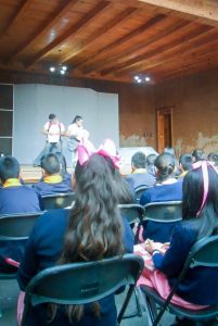En el marco de la semana de la erradicación de la violencia contra la mujer, ante la asistencia cerca de 600 alumnos tanto de nivel secundaria y nivel medio superior, donde se logró el gusto por el teatro a través de una puesta en escena profesional y artística, donde el Centro Cultural Tinganio fue la sede para llevar acabo dicho evento.