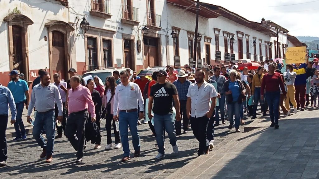 Contando con la presencia de los diversos Líderes sociales y sindicales, la marcha inicio en la glorieta Tanganxhuan -cerca de Bodega- para transitar al centro de la ciudad.