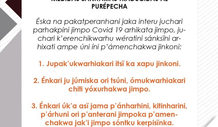 Pátzcuaro, Michoacán, 18 de marzo de 2019.- La Universidad Intercultural Indígena de Michoacán lanzó recomendaciones para prevenir el Covid 19 en las distintas lenguas originarias que se hablan en el estado.