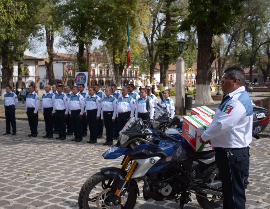 Pátzcuaro, Mich., a 10 de noviembre de 2018.- El presidente municipal, Víctor Báez Ceja, entregó equipamiento para la Policía Turística de este Pueblo Mágico y reconoció el trabajo de capacitación al que se sometieron los elementos de la Dirección de Seguridad Pública.